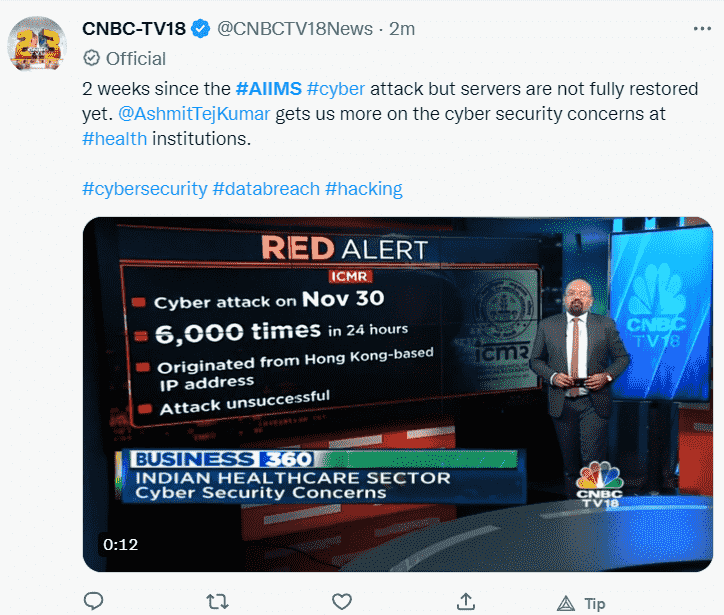 Even after 2 Weeks Cyber Attack on AIIMS got no relief.