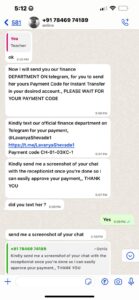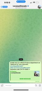 Then, they asked me to message someone with the username “@LavanyaShevade1” on Telegram, which I did without asking any suspicious questions. Later on, as I expected, she asked for the screenshot of the message on Telegram.