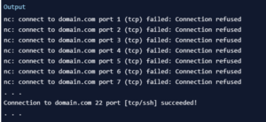 netcat -z -n -v 198.51.100.0 1-1000 2>&1 | grep succeeded